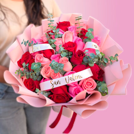 Ramo de 36 rosas, con findo follaje, envuelto en papel coreano.
