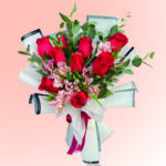 • Ramo floral compuesto por rosas,lirio y claveles envueltos en papel floral.