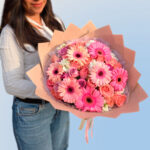 Un ramo de flores con los clores de moda y obvio con las gerberas y rosas de tendencia.